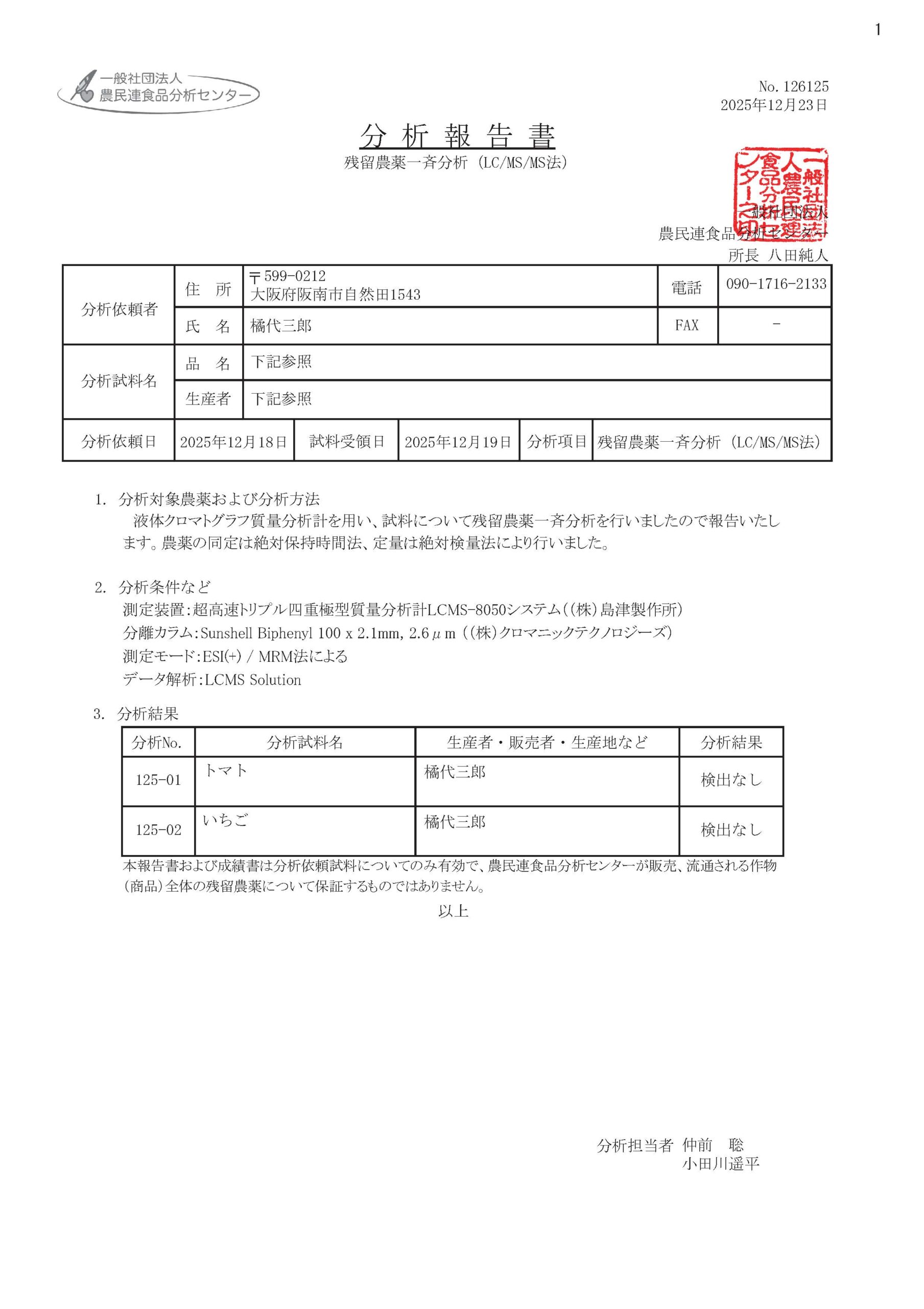 ※トマトで検出ありになっていますが、スピノサドという成分だけが検出下限値以下で見られた、という事です。
